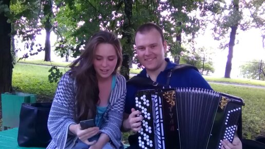 Ангелина и Павел Сивков (баян) Встреча в парке в Москве. Песни под баян. "Роза расцвела в саду" 2015 год