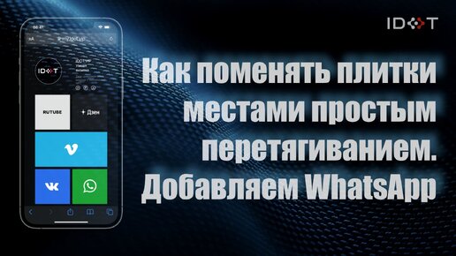 12. Как поменять плитки в цифровой визитке Айдот местами простым перетягиванием. Добавляем WhatsApp