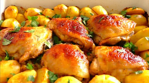 Куриные бёдрышки с картошкой в сметане.