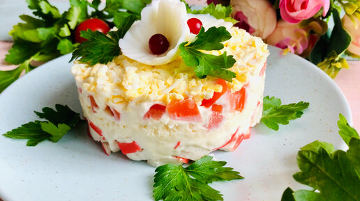 Салат из Крабовых палочек.Простой и вкусный на скорую руку.