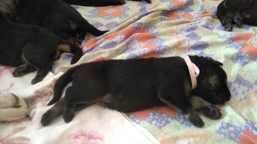 Щенкам 12 дней. Знакомимся с девочкой в розовом ошейнике- третья из трёх девчонок!