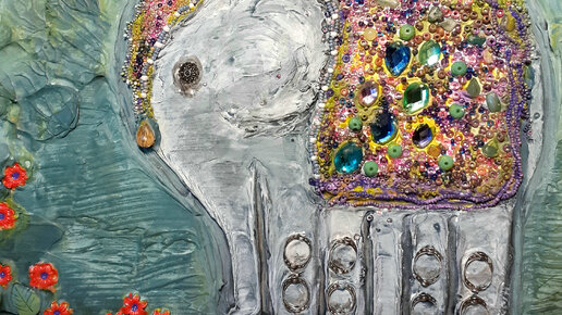 Когда остатки шпатлевки и бисера нельзя выкинуть. Создаю картину со слоном. Делаю фактуру листьями и бусинами.