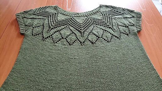 Топ спицами с круглой кокеткой. МК по узору