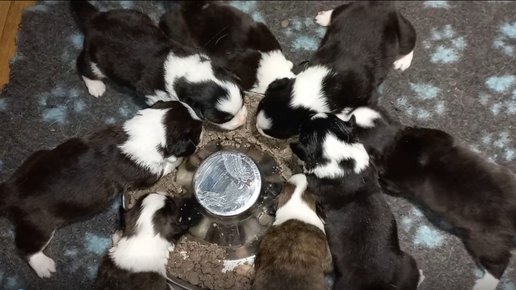 Первый прикорм щенков вельш когри кардигана.