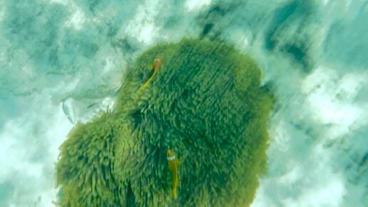 Живность Мальдив. Рыбки-клоуны прячутся в актинии