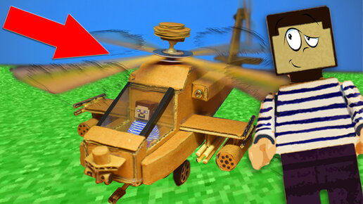 НУБ ПОСТАВИЛ МОЩНЫЙ МОТОР В ВЕРТОЛЕТ ИЗ КАРТОНА! ОН ВЗЛЕТИТ? КАК СДЕЛАТЬ АПАЧ! НУБИК В МАЙНКРАФТ DIY