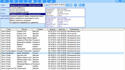 Астрологическая программа Locator - Справочник географических координат и поясного времени