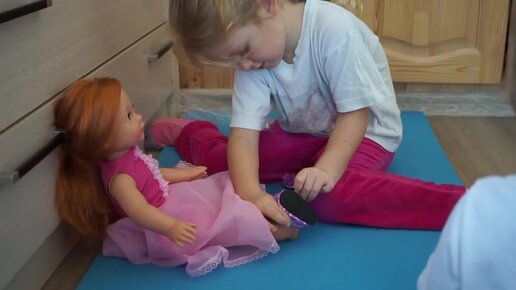 Ульяна примеряет туфли кукле Готц!