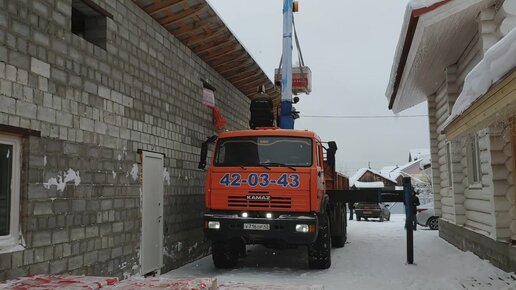 Разгрузка кирпича манипулятором в стеснённых условиях. На объекте у заказчика.