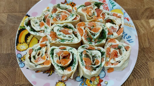 Рулет из лаваша с красной рыбой. Рулет с лососем.