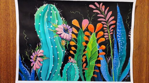 Рисуем кактусы вместе — пошаговый мастер-класс с объяснениями