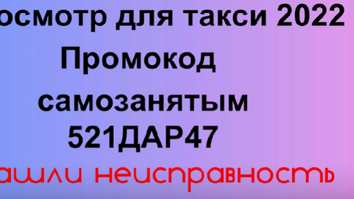 Прошел техосмотр, ТО, промокод для самозанятого Яндекс Такси 521ДАР47 на 2 смены без комиссии Яндекса