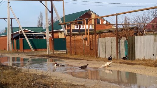 Ничего необычного, просто утки в луже после дождя. Жизнь в деревне. Поселок Приморский.