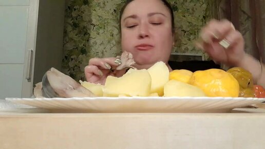 Мукбанг😜😝🤪Скумбрия,картоха,патисончики,помидорки🙈💋💋💋❤