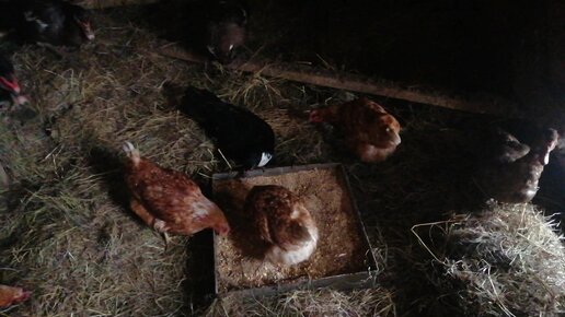 Кормлю живность. Поменял подстилку в сарае. Набил гнезда сеном.Утки Куры.