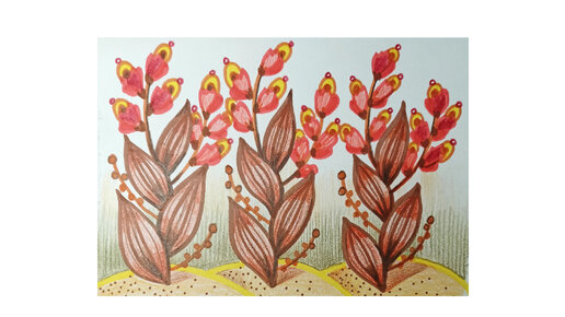 Цветы на песке - рисунок фломастерами и цветными карандашами.