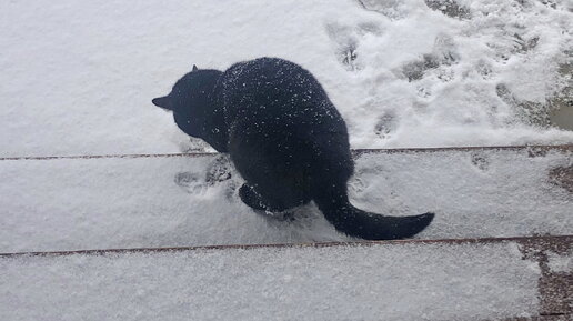 В конце марта навалило снега. Но Чернышу это только в радость, он с удовольствием гоняет мячик, несмотря на метель.