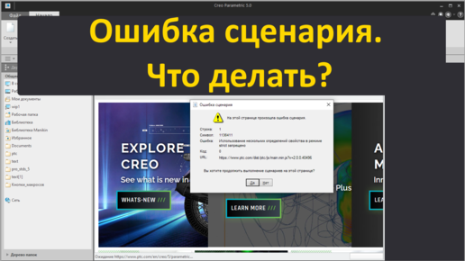 PTC Creo. Ошибка сценария на странице браузера Creo. Как исключить эту ошибку?