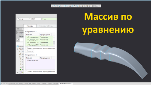 Далее: PTC Creo. Приращение массива через уравнения двумя способами.