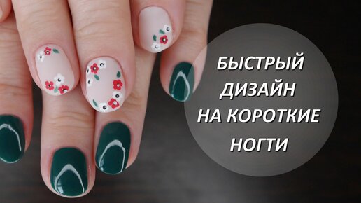 Весенний дизайн на короткие ногти, цветочный принт (обычный лак)