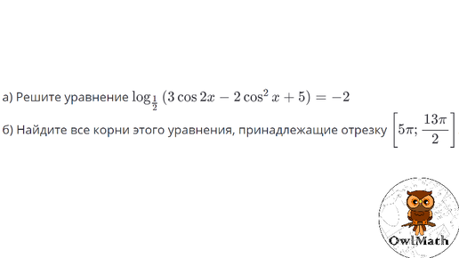 Тригонометрическое уравнение #2 (log 1/2 (3cos(2x)-2cos^2(x)+5)=-2)