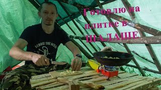 Bushcraft. Готовлю на плитке в ШАЛАШЕ.У меня завелся питомец :) Cooking on a tile in a shelter