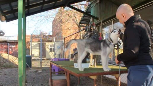 Щенок учится проходить узкие места. Смотрите и повторяйте!