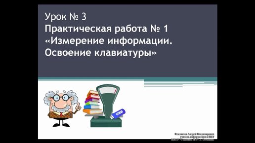 Информатика, 7 класс. Урок № 3. Практическая работа № 1 - Измерение информации. Освоение клавиатуры
