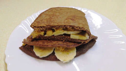 Если надоел классический овсяноблин, можно приготовить шоколадный и добавить любимую начинку (у меня банан)