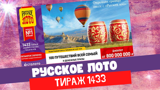 Русское лото 1433 тираж от 27 марта, Проверить билет, Столото