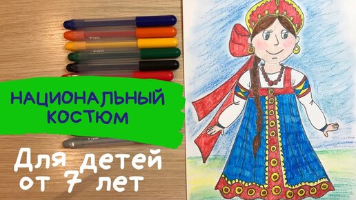 Национальный костюм рисунок для детей. Русский народный костюм рисунок. Женский костюм рисунок. Карандаши и краски.