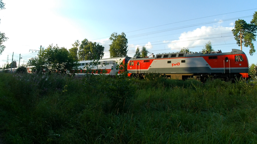 Двухэтажный пассажирский поезд с электровозом ЭП2К