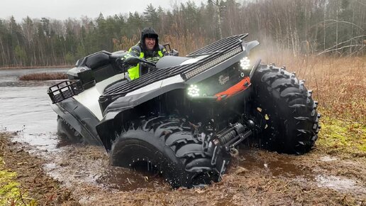Квадроцикл Сокол Трофи выходит с плава на ковровое болото