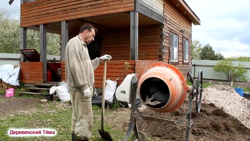 Мешаем бетон руками в обычной ванне_фундамент своими руками.mp4