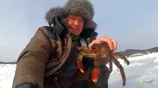 Крабы из подо-льда. Рыбалка сахалин. Королевский краб.