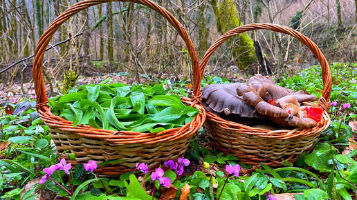 Грибник сделал открытие. Грибы и черемша в марте 2022. Краснодарский край. Гриб вешенка и саркосцифа