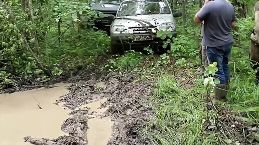 На бездорожье на внедорожниках 4x4 Нивы, Внедорожник УАЗ сломался и Land Cruiser сломался.