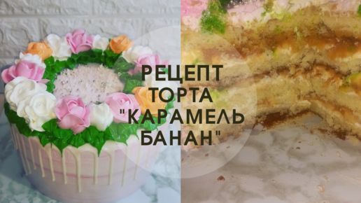 Торт "КАРАМЕЛЬ-БАНАН". Рецепт очень вкусного торта. Американский бисквит, карамель, крем чиз.