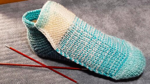 Суперские короткие носочки /следочки двумя спицами/ без шва /узор хеликс поворотными рядами