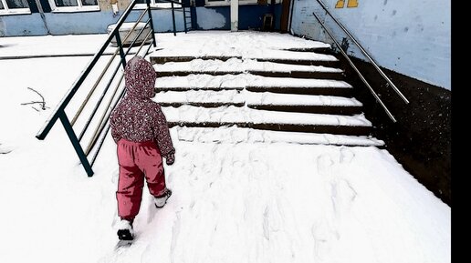 Идём с ребёнком в детский сад и радуемся сюрпризу. Или когда снег выпал весной.