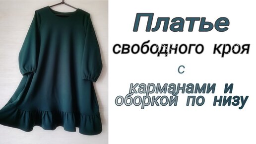 Платье свободного кроя с карманами и оборкой по низу.