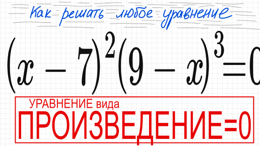 №3 Уравнение со скобками (х-7)^2(9-х)^3=0 Уравнение вида Произведение=0 Решите уравнение со скобками Уравнение 8 класс 9 кл 7 кл
