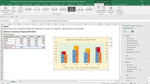 Гистограмма с группировкой (с абсолютными разницами)