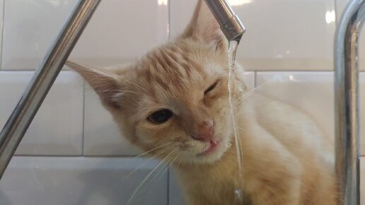 Котик Зайчик в детстве. Как попить из крана?