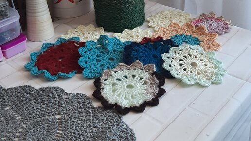Из джута для спиц, из остатков пряжи для чашек😉