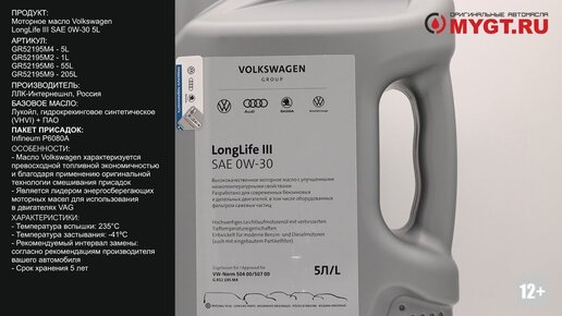 Моторное масло Volkswagen LongLife III SAE 0W-30 5L GR52195M4 #ANTON_MYGT