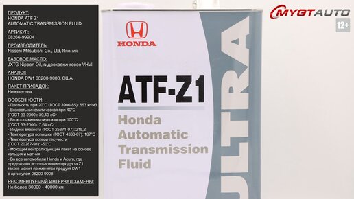 Трансмиссионная жидкость Honda ATF Z1 AUTOMATIC TRANSMISSION FLUID 08266-99904 #ANTON_MYGT
