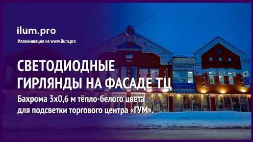 Украшение фасада ТЦ «ГУМ» во Владимирской области светодиодными гирляндами на Новый год / Айлюм Про