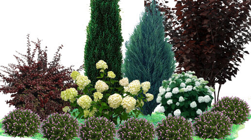 Яркая схема клумбы с цветущими кустарниками