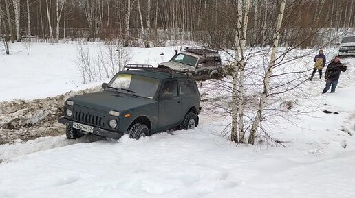 Кто едет по снегу лучше заряженная Нива или заводской Патриот, показываю